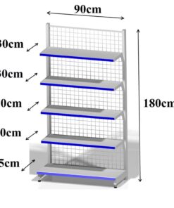 Kệ có thiết kế dạng lưới và 5 tầng giúp tối ưu hóa không gian trưng bày và lưu trữ hàng hóa. Nhờ vào cấu trúc gọn gàng và chiều cao hợp lý, kệ siêu thị đơn phù hợp cho cả những không gian nhỏ hẹp.