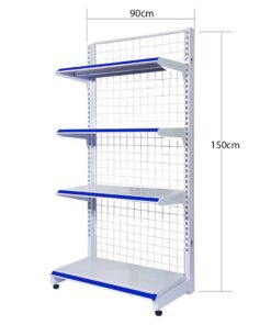 Kệ siêu thị đơn là loại kệ trưng bày hàng hóa được thiết kế với mặt kệ dạng lưới kim loại, giúp tạo sự thông thoáng và dễ vệ sinh. Kệ có 4 tầng chứa, được sử dụng rộng rãi trong các siêu thị, cửa hàng tiện lợi, cũng như các showroom bán lẻ. Kệ có kích thước tiêu chuẩn dài 0,9m và cao 1,5m, phù hợp cho việc trưng bày nhiều loại sản phẩm khác nhau mà không chiếm quá nhiều diện tích.
