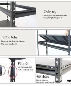 Điểm nổi bật +  Loại kệ gài, không dùng ốc vặn và có nhiều tầng